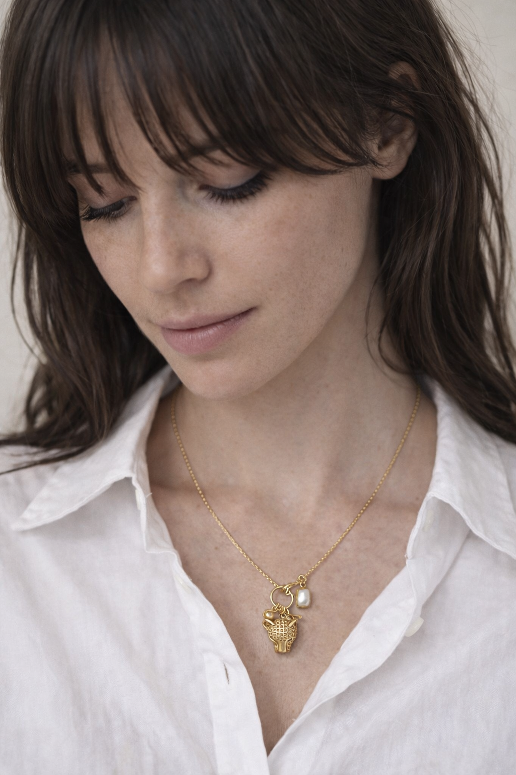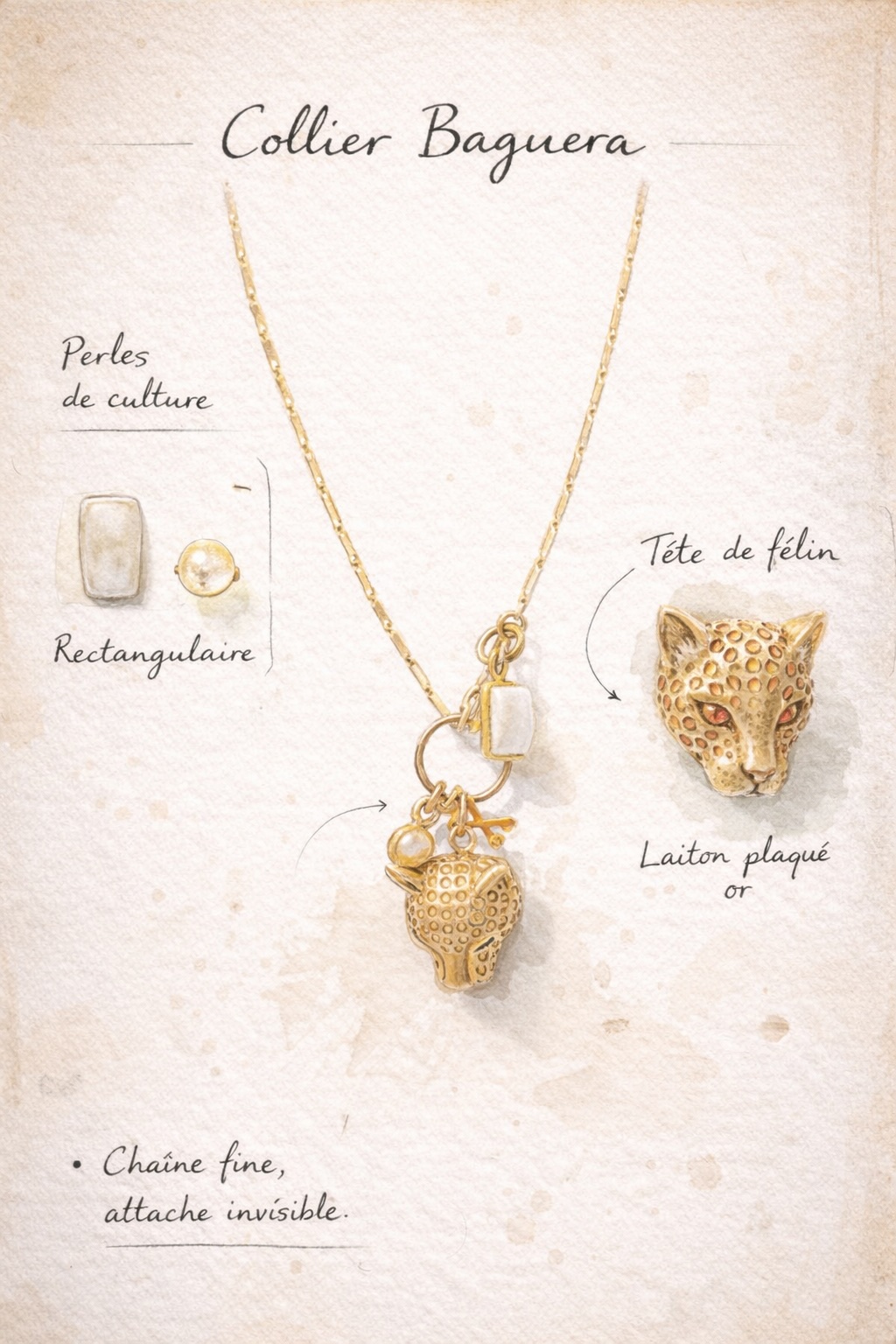 Le collier BAGUERA se compose d’une chaîne fine et d’une attache frontale, pensée comme un point de bascule — là où tout se joue.