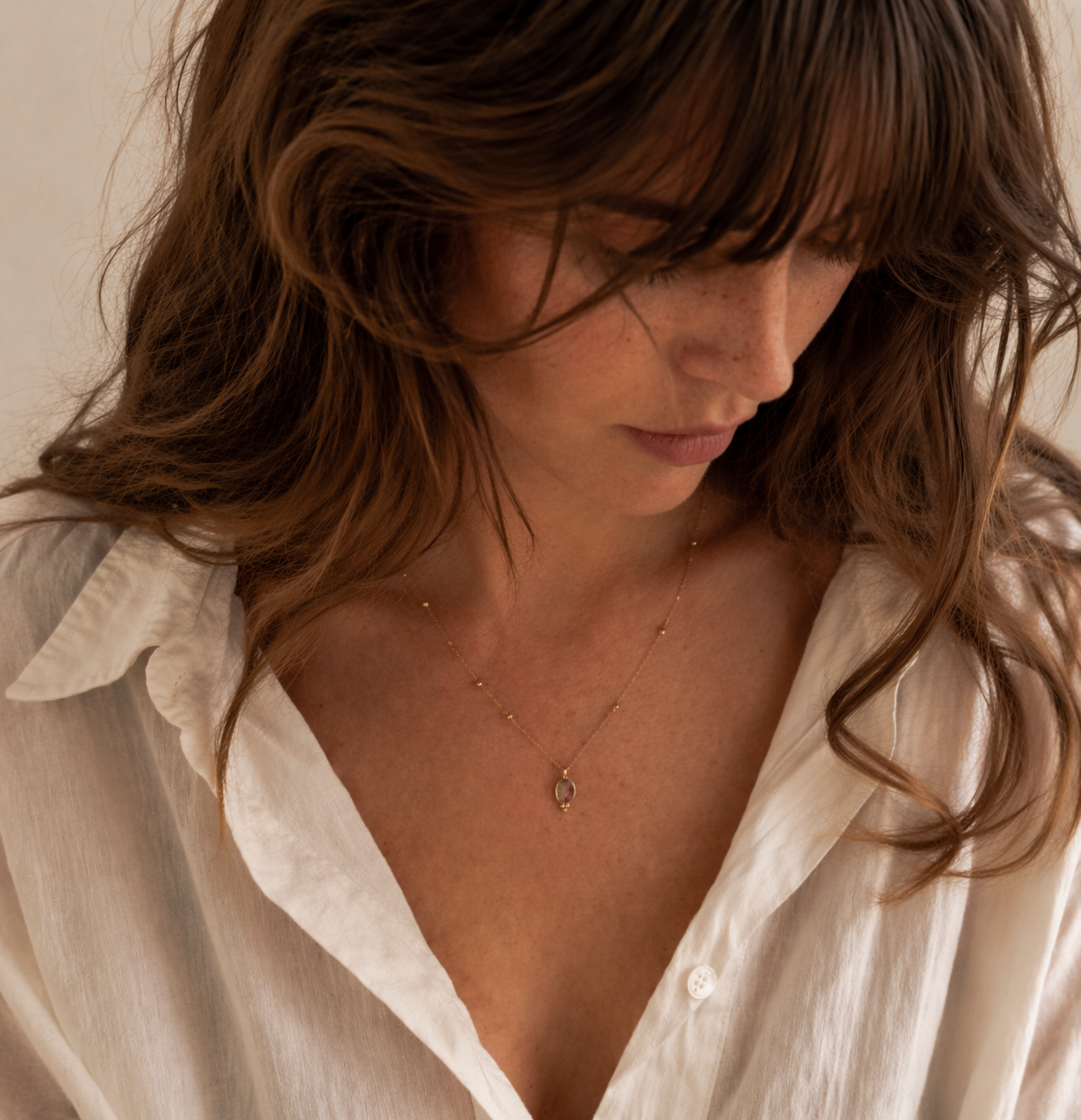 La pierre capte la lumière en douceur, sans éclat figé.